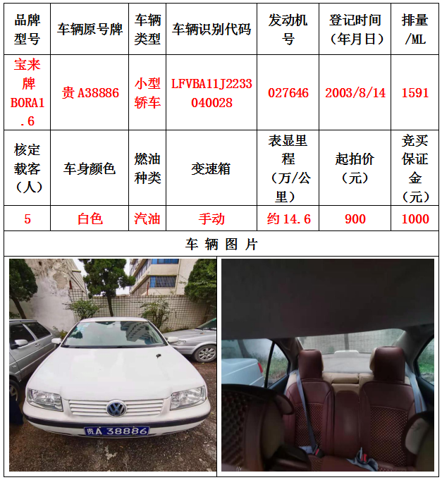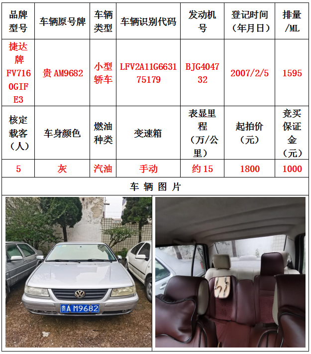 本次拍賣(mài)會(huì)拍賣(mài)的車(chē)輛共計(jì)10輛車(chē),分別為帕薩特牌SVWZ183LJI小型轎車(chē)一輛、匯眾牌SH6530中型普通客車(chē)一輛、別克牌SGM6517小型普通客車(chē)一輛、別克牌SGM7161LE小型轎車(chē)一輛、寶來(lái)牌BORA1.6小型轎車(chē)一輛、捷達(dá)牌FV7160GiFE3小型轎車(chē)五輛(詳情見(jiàn)下文),為打包整體拍賣(mài),不作拆分,整體起拍價(jià):33900元,且只對(duì)標(biāo)的現(xiàn)狀進(jìn)行拍賣(mài),不作任何質(zhì)量擔(dān)保。