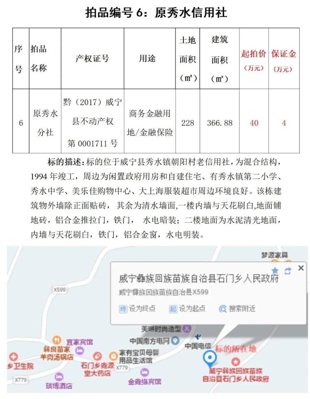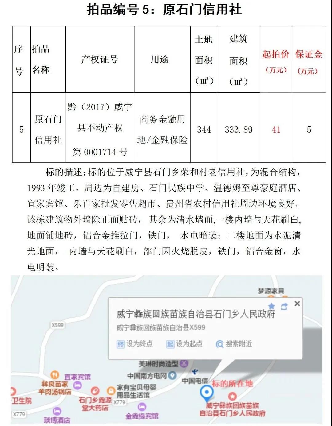 受委托,我公司定于2021年6月 4日(星期五)下午14:30于威寧縣濱海大道草海大酒店公開拍賣以下標的: