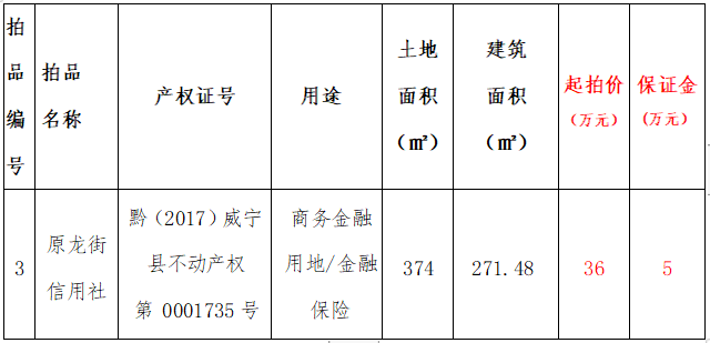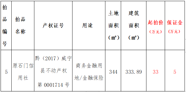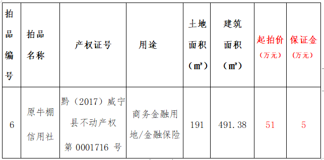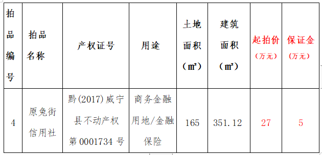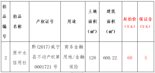 威寧縣農村信用合作聯社土地使用權及自建房拍賣公告