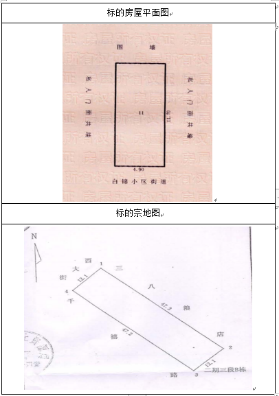 該標(biāo)的位于遵義市播州區(qū)南白鎮(zhèn)白錦小區(qū)二期三段,南面臨白錦小區(qū)街道,其余三面臨其他物業(yè)地塊,房屋總層數(shù)為9層,該標(biāo)的所在層數(shù)為1層,證載房屋建筑面積為57.31㎡,標(biāo)的規(guī)劃用途為為營業(yè),房屋建筑結(jié)構(gòu)為混合,房屋所有權(quán)證號:遵房權(quán)證遵義縣字第200905595號。