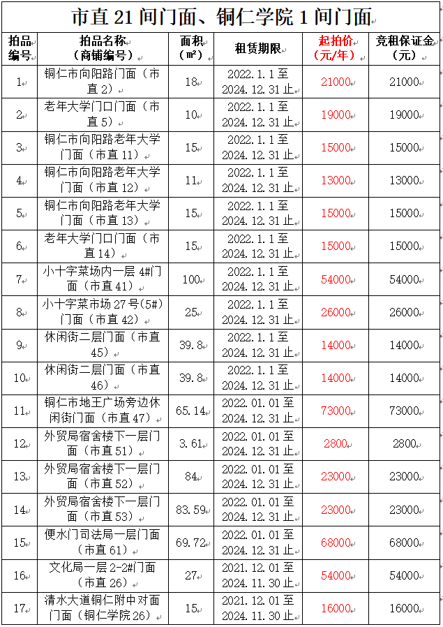 受委托,我公司定于2021年10月27日(星期三)下午14:30時(shí),在銅仁市碧江區(qū)川硐教育園區(qū)誠(chéng)信路銅仁市公共資源交易中心開(kāi)標(biāo)六室(拍賣(mài)大廳)公開(kāi)拍賣(mài)以下位于銅仁市的標(biāo)的租賃權(quán):
