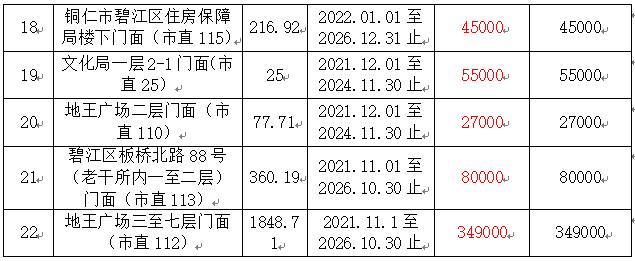 8、碧江區(qū)住房保障局樓下門(mén)面1間,面積:216.92㎡,租賃期:5年;