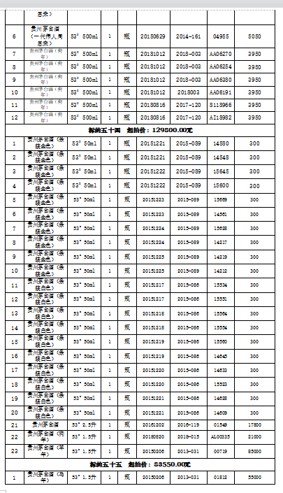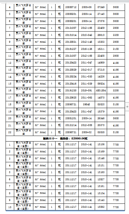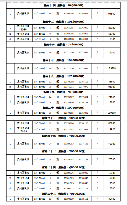 注:本場拍賣標的經(jīng)過貴州茅臺酒股份有限公司鑒定為其公司生產(chǎn)。所有標的按現(xiàn)狀進行拍賣,競買人自行判斷。報名后持報名成功短信進入展示現(xiàn)場看樣,看樣時需提前預約,配合工作人員安排。競價成功的買受人需公示期過后付款提貨。競買人需到現(xiàn)場查驗,如未到現(xiàn)場實地看樣的競買人,視為對本標的實物現(xiàn)狀的確認,責任自負。成交后買受人需向拍賣人另行支付成交價2%的傭金。競買人應于2022年1月13日下午13:20時前入場,遲到視為放棄此次競拍。