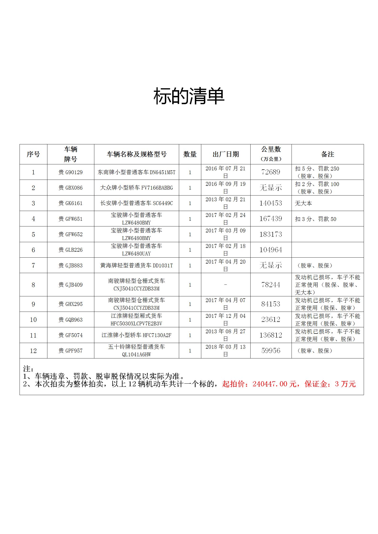 大眾牌、寶駿牌、東南牌、黃海牌、長安牌、南俊牌等12輛公務(wù)用車整體打包拍賣